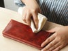 ケアクリームを塗る際、あるいは乾拭きする際に使いやすいコットン製のクロスです。表面が起毛していて非常に柔らかく、コードバンやソフトレザーなど繊細な表面の革にも安心して使用できる素材です。