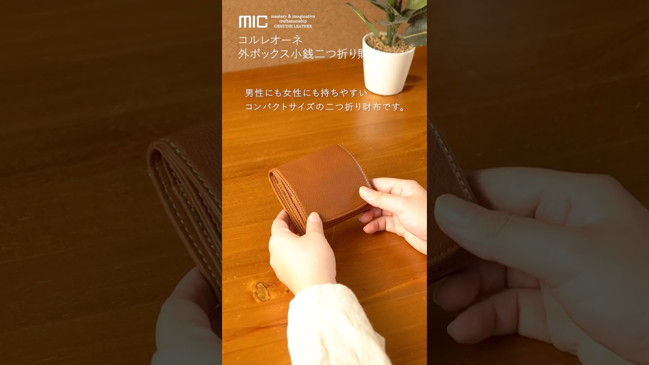 コンパクトで軽く、便利な外側小銭入れ付きの二つ折り財布