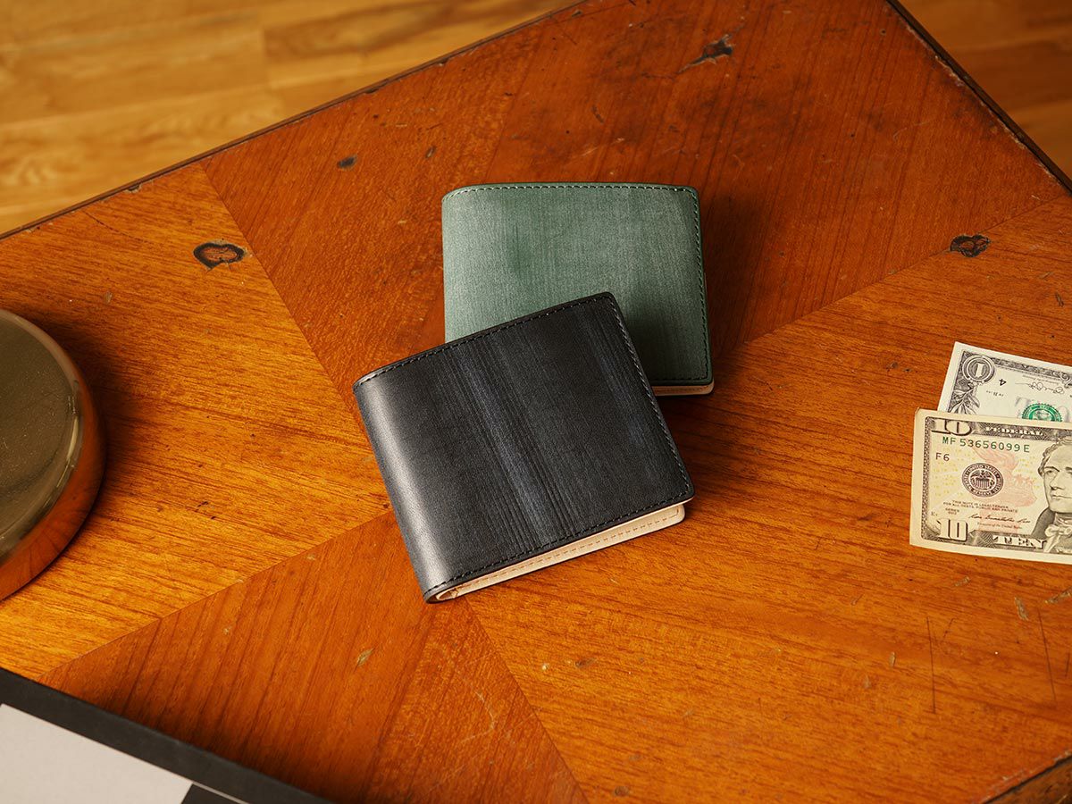 他の画像を見る バグッダ 二つ折り革財布(小銭入れ無し) 名入れ刻印可 イニシャル刻印可 販売価格 ¥ 13,200 税込 大胆な色ムラを楽しむ、純札入れタイプのオイルプルアップレザー二つ折り財布 詳細を見る お気に入りに登録する