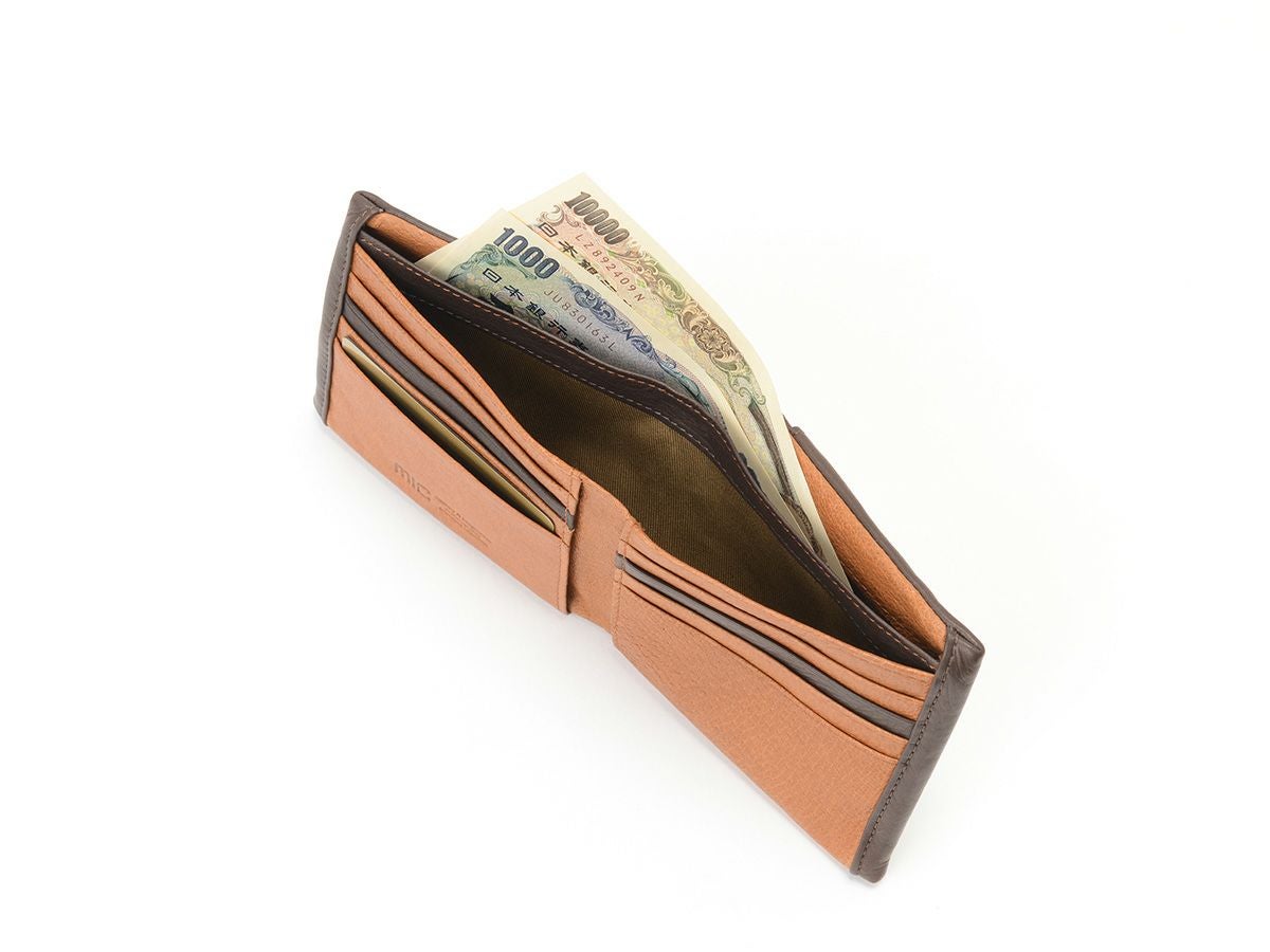 micのラインナップの中でも特に柔らかい革のシリーズがこのマイルドキップです。肌に吸いつくように馴染むその質感はこだわりの鞣しとオイルによるもの。型は二つ折り財布を中心に、ポーチや脱着式のキーリングを備えた小銭入れなど便利なアイテムがそろっています。