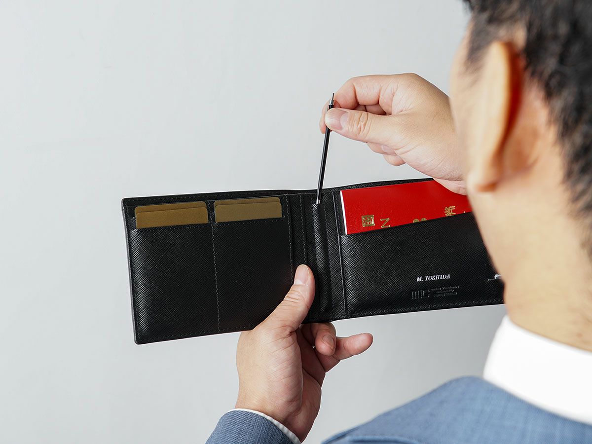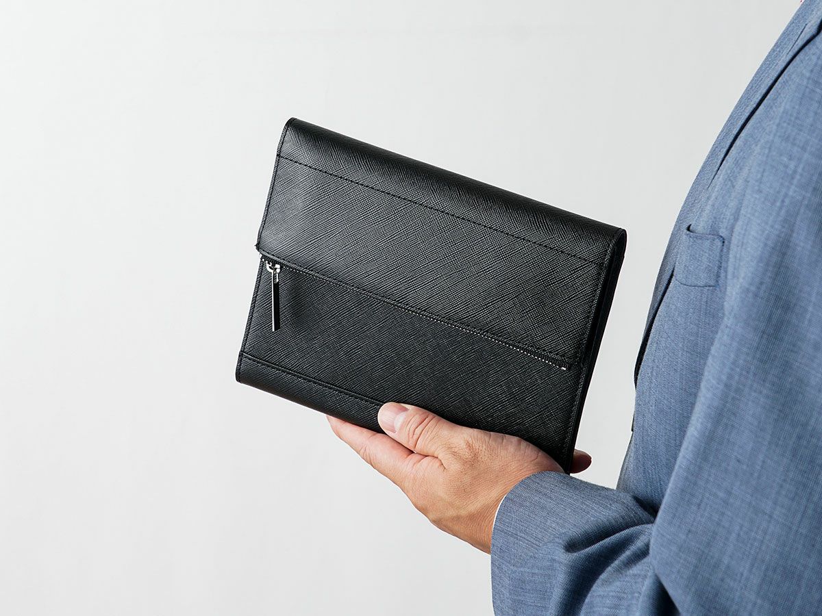 派手すぎない上品な光沢感を帯び、細かやかな角シボ模様の型押し「サフィアーノレザー」を使用。型押しにより引き締まった革は耐久性も抜群。本革としては比較的軽量で扱いやすさも魅力です。