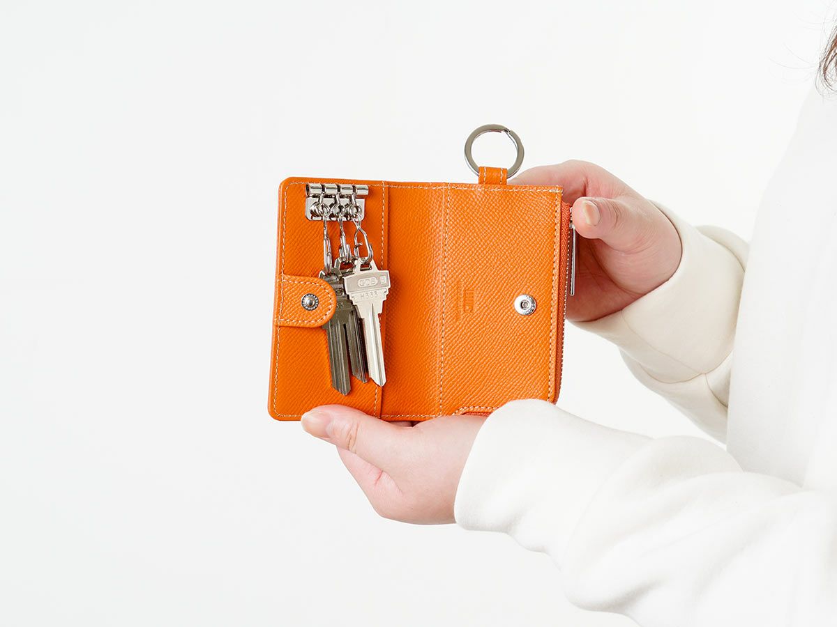 他の画像を見る エンボス L字ファスナー小銭入れ付きキーケース 名入れ刻印可 販売価格 ¥ 8,800 税込 「鍵+ 小銭入れ +カード収納」マルチユースな型押しレザーキーケース 詳細を見る お気に入りに登録する