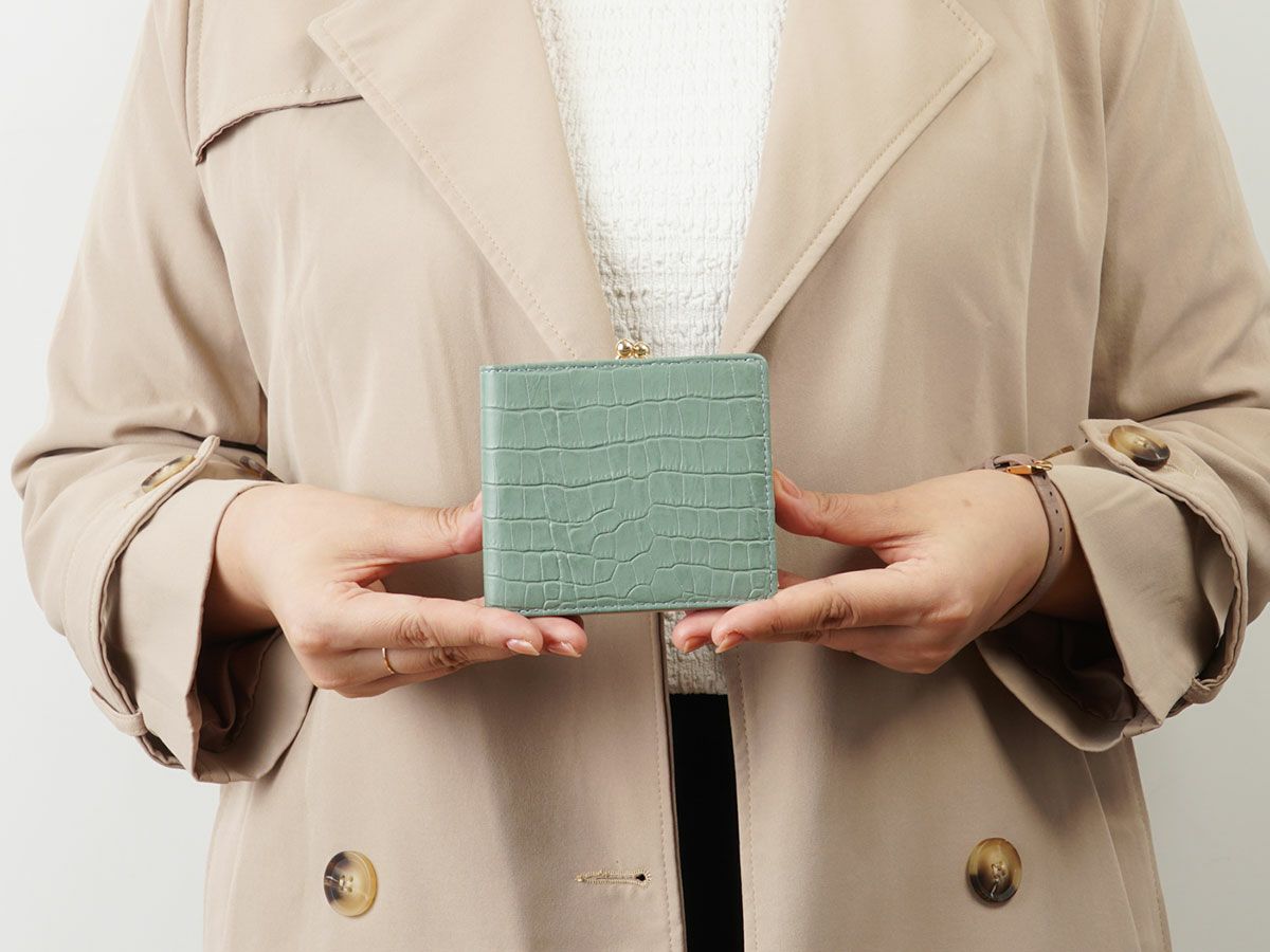 他の画像を見る クロコ 外がま口二つ折り財布 新商品 名入れ刻印可 イニシャル刻印可 販売価格 ¥ 16,500 税込 販売開始前です。 販売期間 2025/11/15 17:00 〜 持ちかえずに“ぱっと出し入れできる”。外がま口×同方向の収納で使いやすい、上品クロコの二つ折り財布 詳細を見る お気に入りに登録する