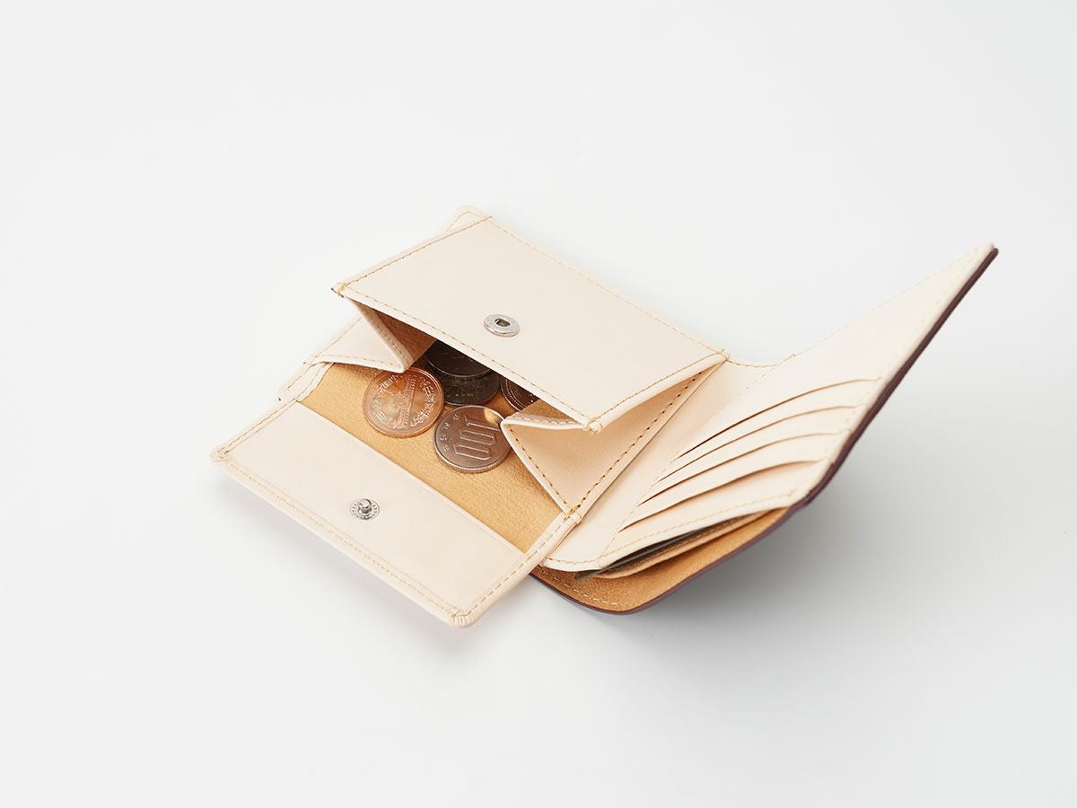 以前こちらのお店で長財布を購入し、愛用していました。とても使い勝手が良く、デザインも気に入って大満足でした。 最近はスマホ決済も増えたので、もう少しコンパクトな財布にしたいと思い、こちらの二つ折り財布を購入。ちょうどいい大きさで見た目も可愛い。皮の質感や色も素敵です。 これからの皮のエイジングを楽しみに、大切に使っていこうと思います。