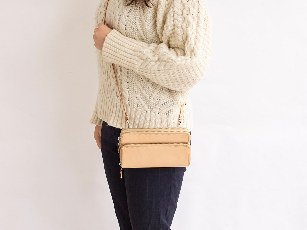 他の画像を見る グレージングヌメ マルチウォレット(ショルダーストラップ付) 生産終了 販売価格 ¥ 29,150 税込 在庫切れ 3つの収納部に中身が探しやすく整理しやすい工夫がこらされた、ヌメ革マルチウォレットが肩掛けポーチに 詳細を見る お気に入りに登録する