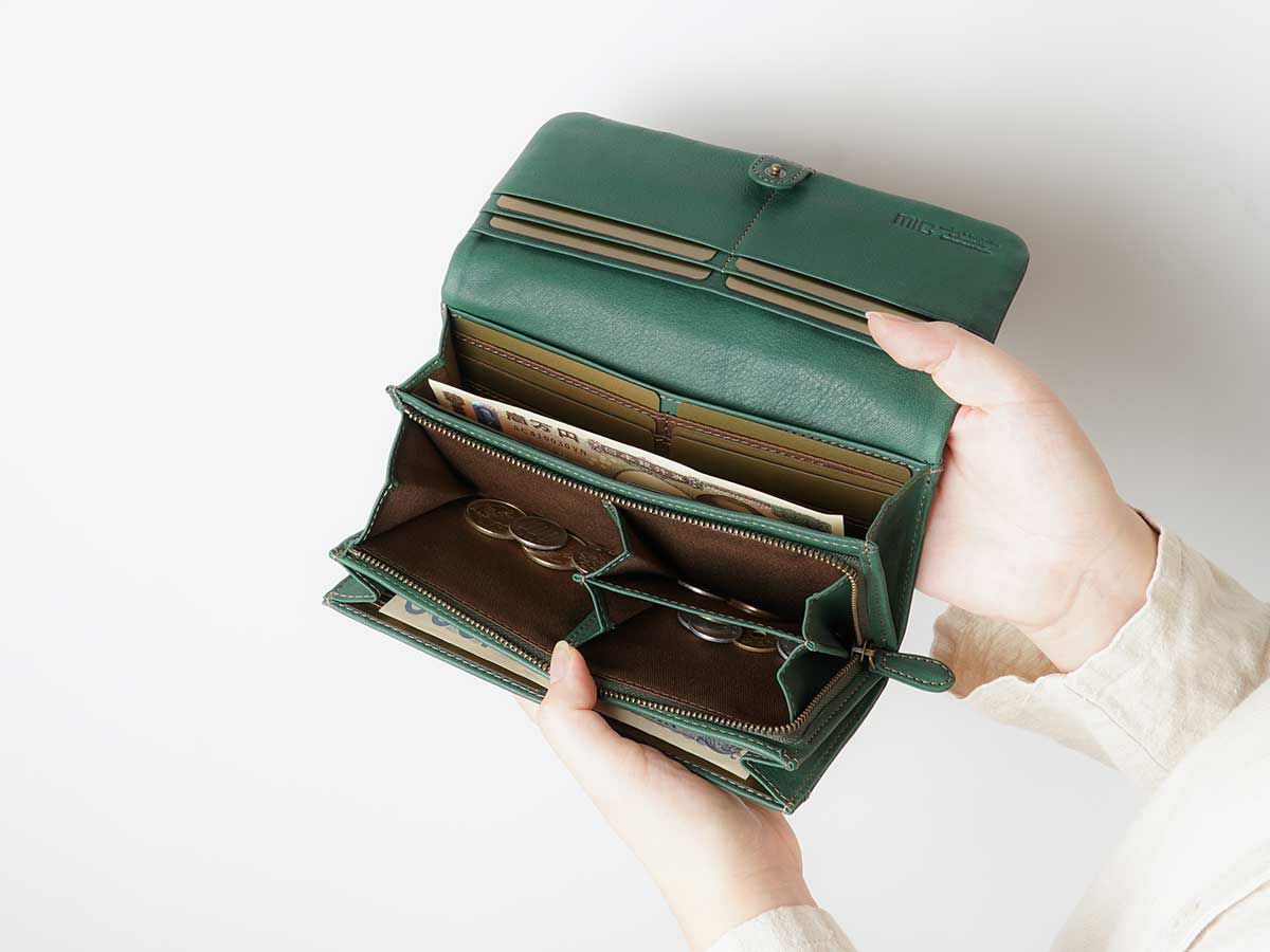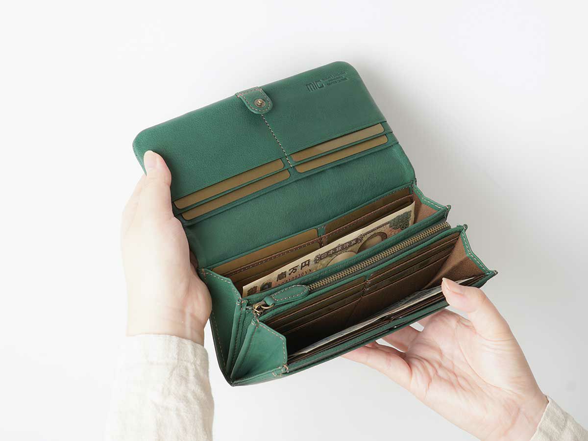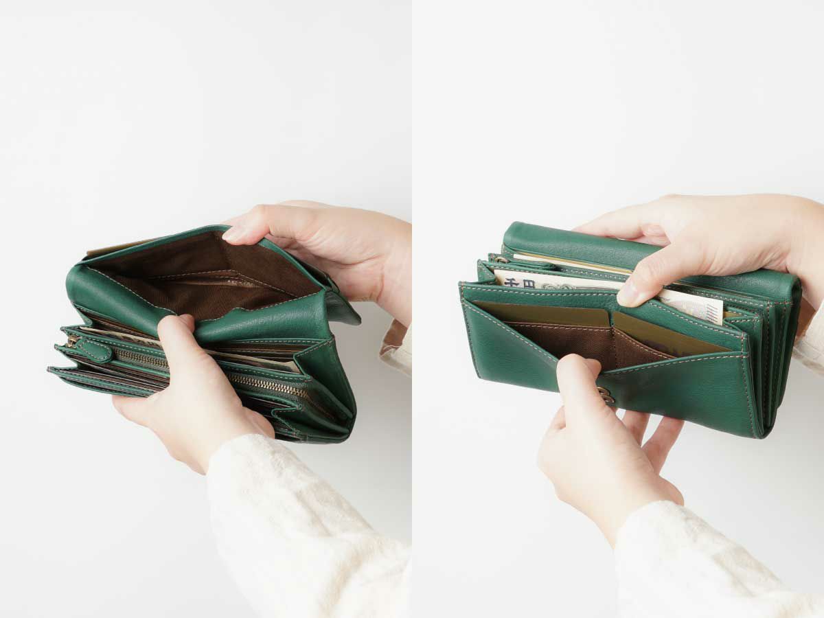 A. 長財布の最大のメリットは、お札を折らずにそのまま収納できることです。 ビジネスシーンでもスッキリとした見た目で、スマートに使えますし、カードやレシート、小銭まできちんと整理できるので、使い勝手もとても良いですね。