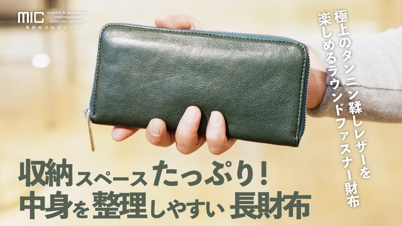 micが得意とするラウンドファスナー仕様のグレージングヌメ長財布。