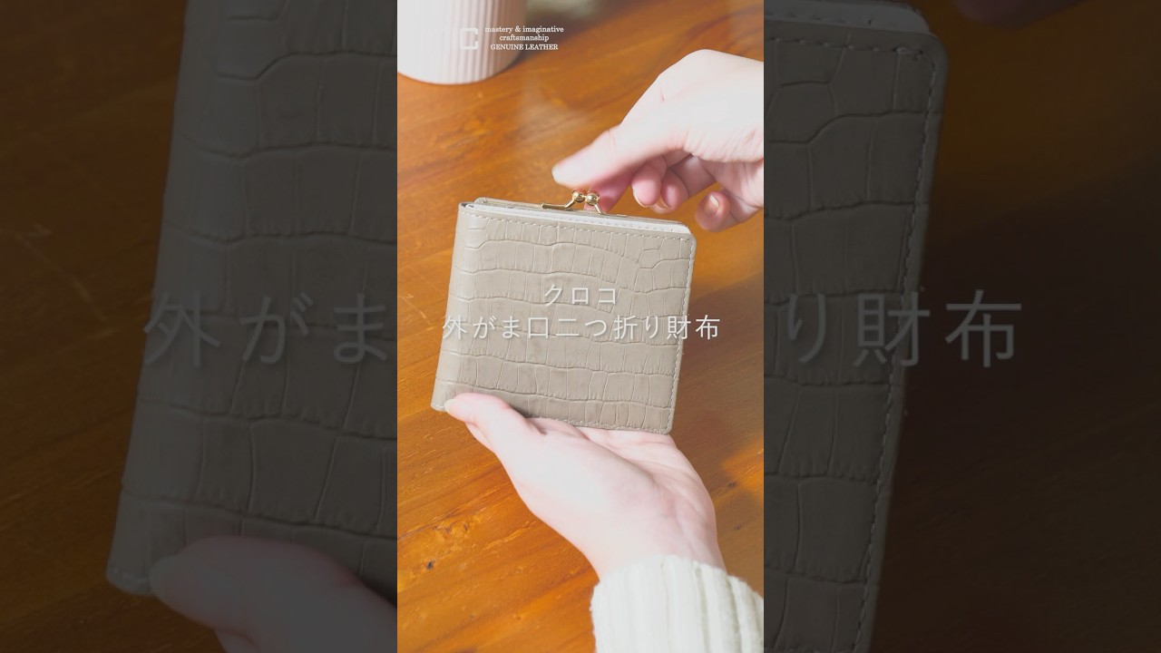 持ちかえずに“ぱっと出し入れできる”。外がま口×同方向の収納で使いやすい、上品クロコの二つ折り財布
