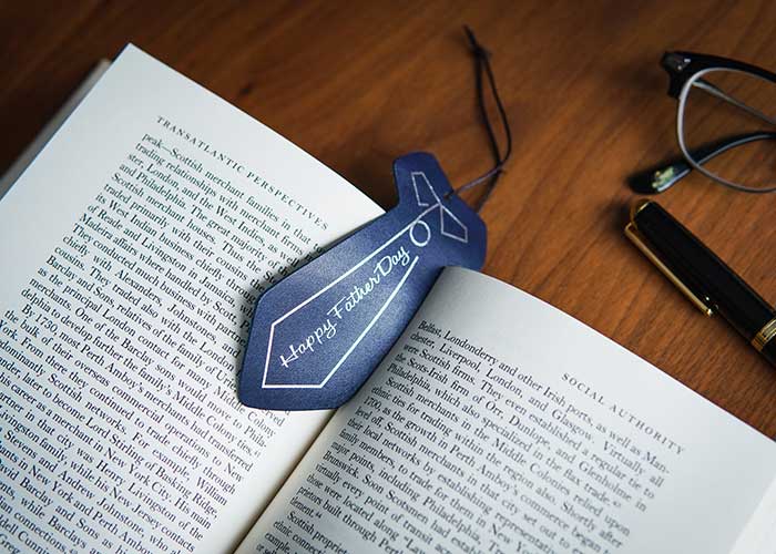 無料でご利用いただけます箔押ししたネクタイモチーフの本革タグは取り外した後、しおりとして使っていただけます。 また、ポーチは中身を出した後も小物入れなどにご利用いただけます。父の日用のみ無料にてご利用いただけます。