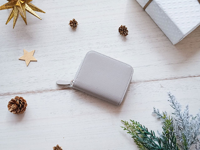 通常有料のギフトポーチがクリスマス期間のみ無料でご利用いただけます。本革のベルトホックの部分にはクリスマスオーナメントと、micのアイコン「ヒップポケット革財布の形の限定レザータグが付き、大切なギフトを演出いたします。