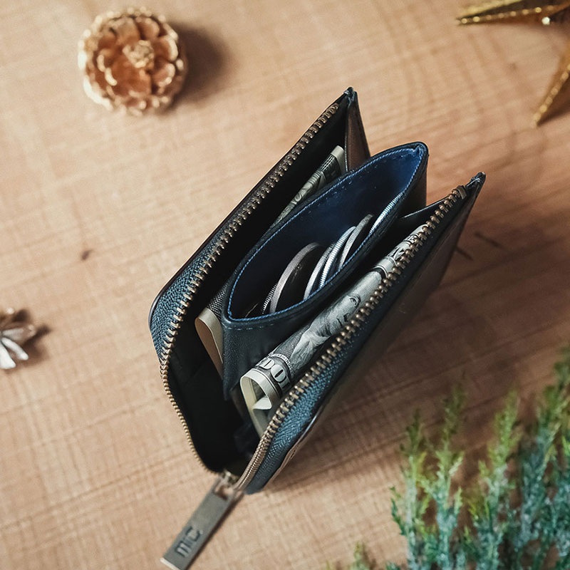 ポケットにすっぽり収まりのよいミニ財布、二つ折り財布はこのところさらに注目度がアップしています。mic定番のヒップポケット革財布に加えて、薄型やカードがたくさん入るタイプなどバラエティ豊富にラインナップしています。