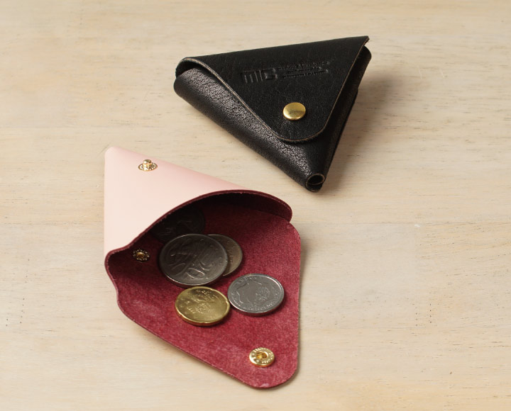 本革の三角コインケースを店頭にてプレゼント