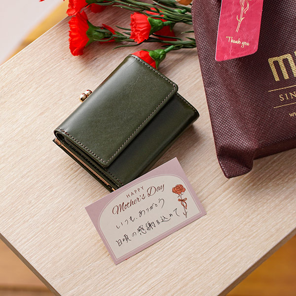 お出かけには、小さめのバッグを持ち歩く母。できるだけお財布もコンパクトにしたいはずだけど小さすぎるとパンパン…(笑)それは避けたい!そこでこちらのミニ財布を選びました。コンパクトながら現金もしっかり入るし、ガバッと開くがま口タイプで、見やすくて取り出しやすいのも魅力的。また「上品で深みのあるレザー×ゴールドの金具」上品さがツボ。かつ、がま口でキュートな遊び心も忘れない。全てにおいてバランスの良いこのお財布に決まりです!