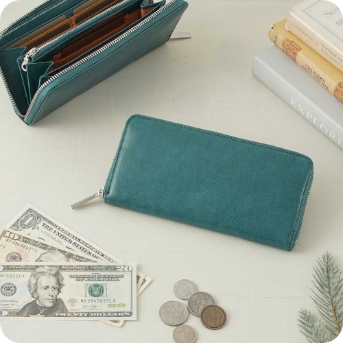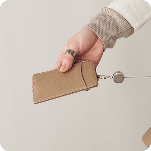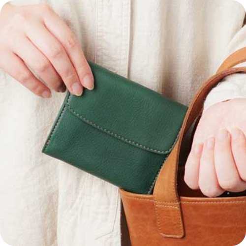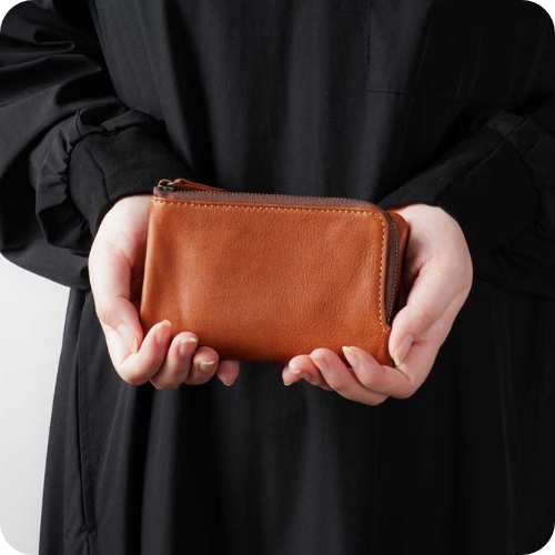 優しいカラーと革の柔らかな質感。使い勝手も抜群の人気アイテム。