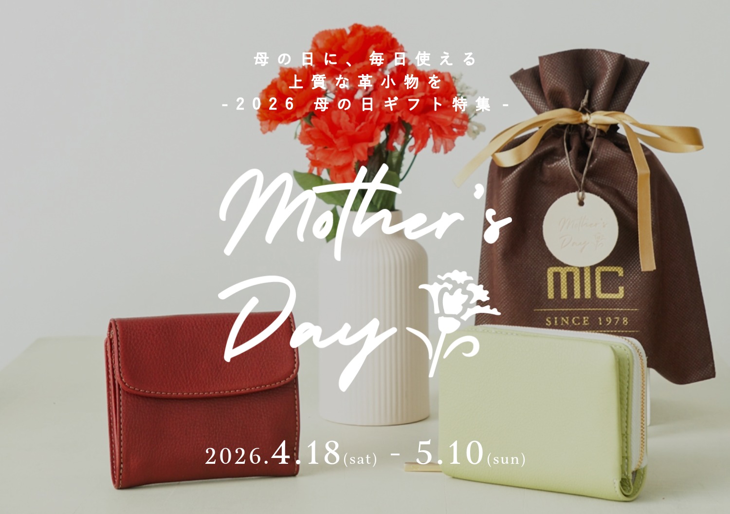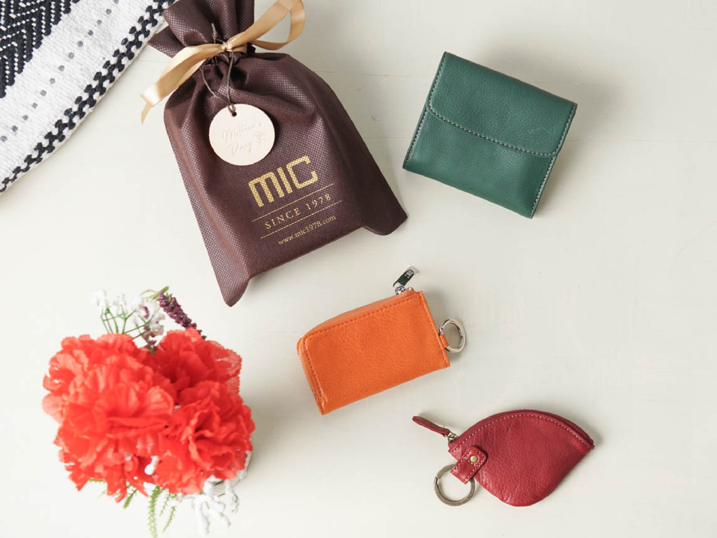 カーネーションもいいけれど、日々の暮らしを楽しく快適にする革小物のギフトを贈りませんか?micおすすめのアイテムをぜひご覧ください。