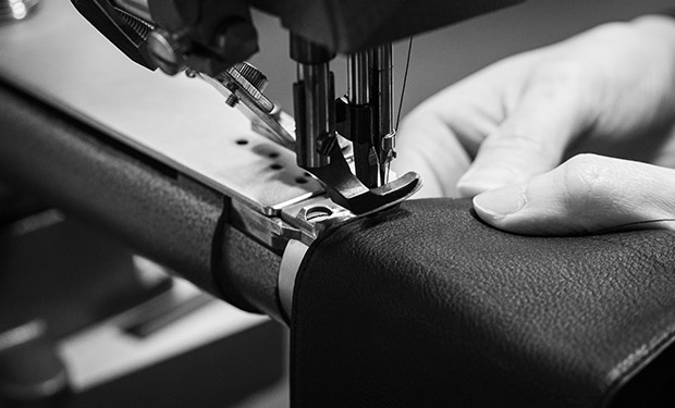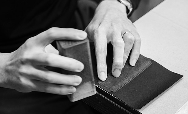 設計、試作の段階から1mm単位の寸法にこだわり造り込む。革の厚みの0.1mmの差にこだわり造り込む。