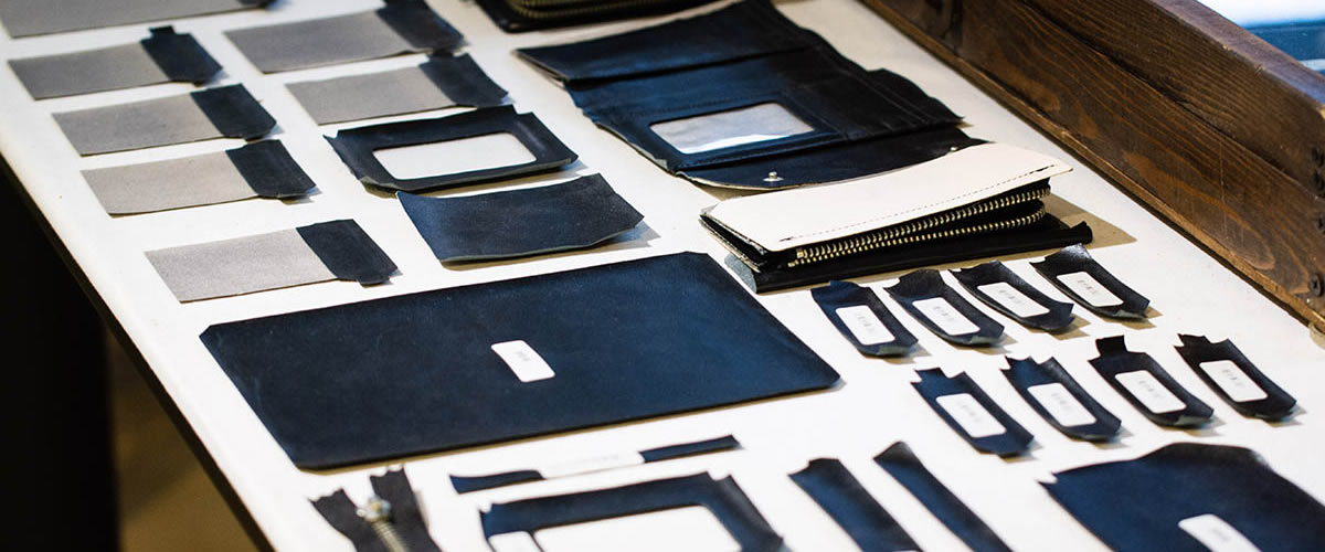 一方、micでご用意しているアイテムの多くは裏地が付き芯材が入ります。構造は複雑で加工にかかる手間も裏地の無い製品に比べてとても多くなります。先の洋服に例えて言うなら、スーツに近い作り方をしています。
