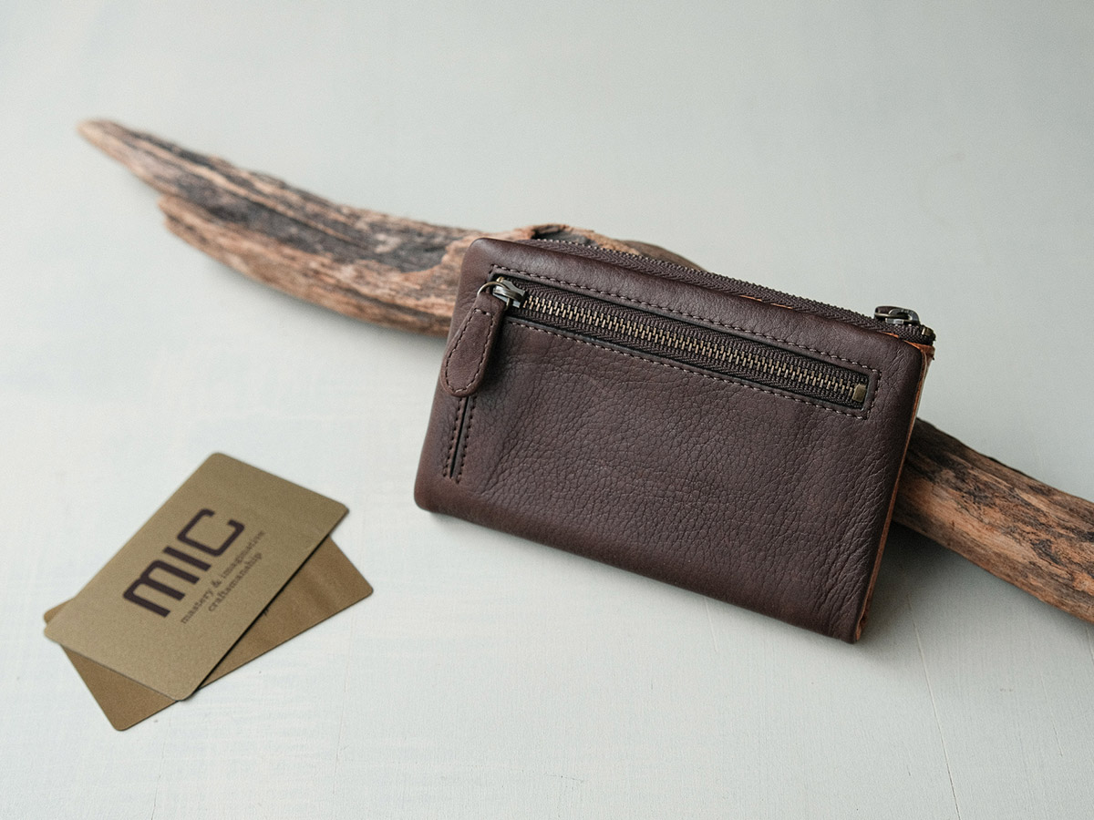 こちらのお財布は、一見するとかぶせ(フタで閉じる)タイプのシンプルな外観ですが、実はmicの全ラインナップの中でも2番目にカードポケットの多く入ります。その数なんと32枚分。余裕のある造りなのでたくさん入れてもパンパンに膨れにくいのが特徴です。