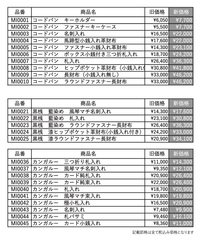 2025.12.29レザーケアパック 価格改定のお知らせ