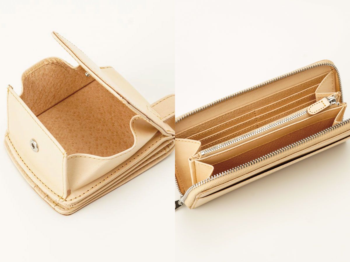 - ①豚革の変更:小銭入れ内部・札口に使用しておりました豚革の鞣しが「タンニン鞣し」から「クロム鞣し」に変更となります