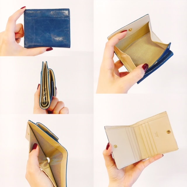 三つ折りミニ財布Aと形が良く似ていますが、こちらの方が少しだけ大きくなっています。