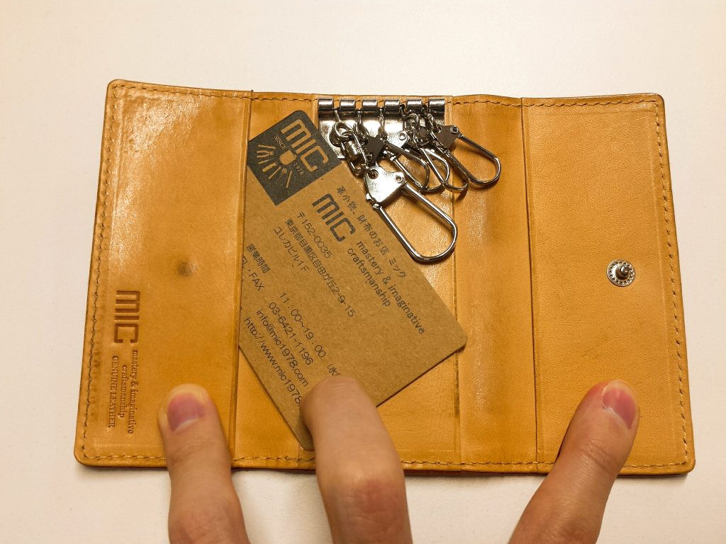 micのキーケースには短いキーカンが4つ、長いキーカンが1つ付いています。