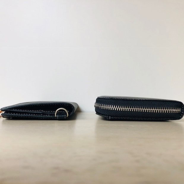 ラウンドファスナータイプは、2.4㎝とカブセタイプより薄めなのにそれでも更に薄いです。