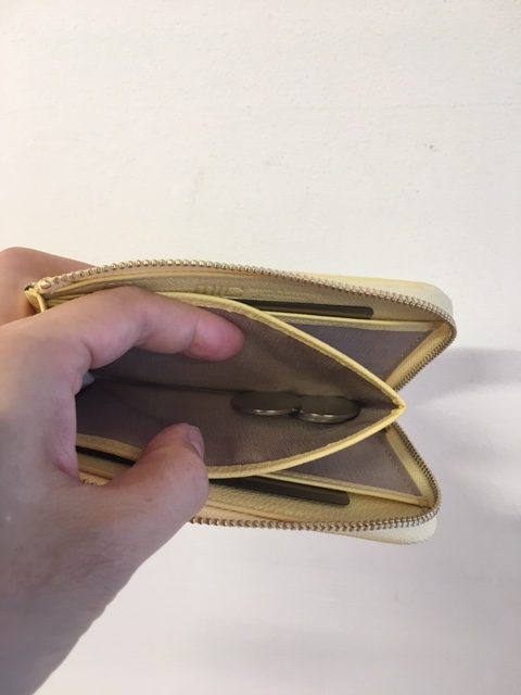 お札は折りたたんで入れられ、両サイドにカードも入ります。