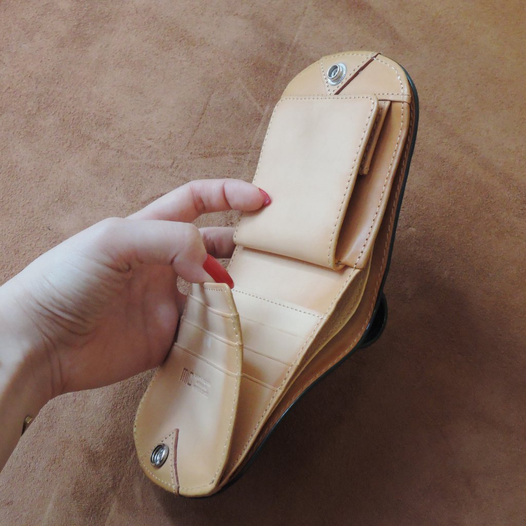 その煩わしさを解消すべく、ヒップポケット革財布ではお財布上部にもカーブを付けて、快適な取り出しを実現しました!
