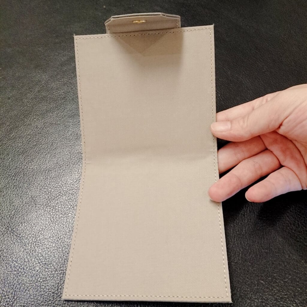 外側は深みがあり鮮やかな発色の型押し加工の牛革を使用しております。