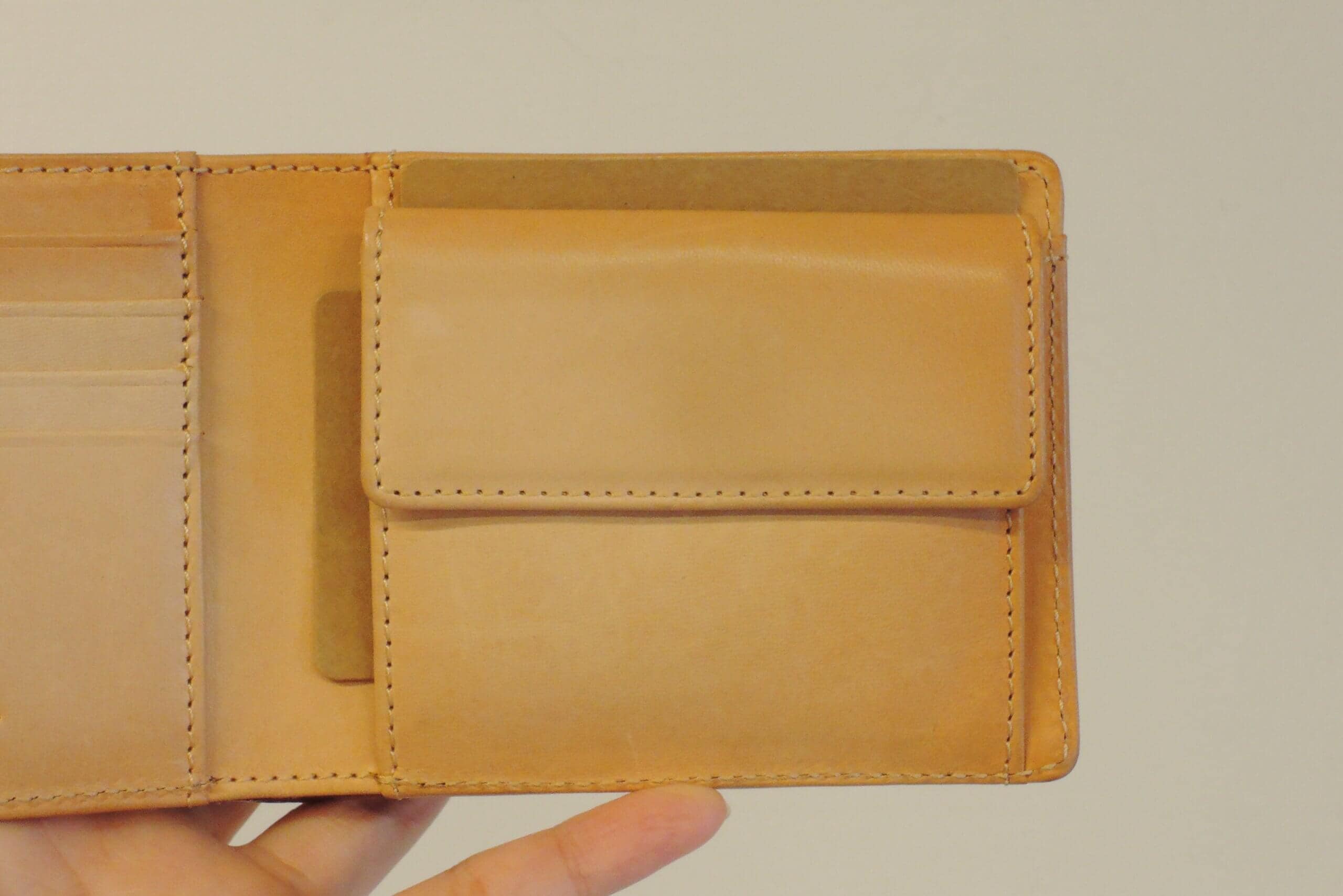 小銭入れはカブセタイプで、しっかりとマチが付いているので小銭が見やすく取り出しやすいです。