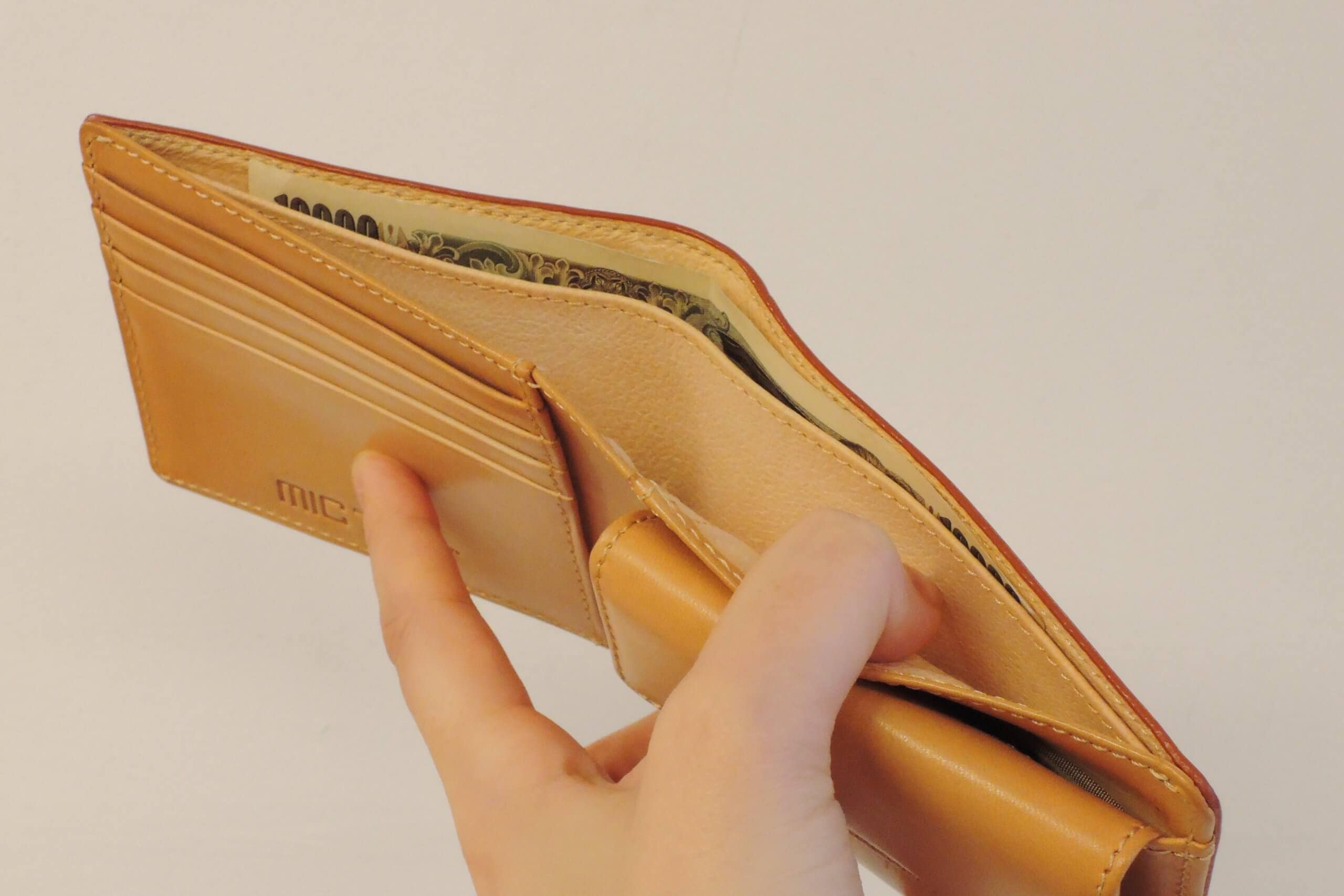 札入れは一万円札もすっぽり収まります。