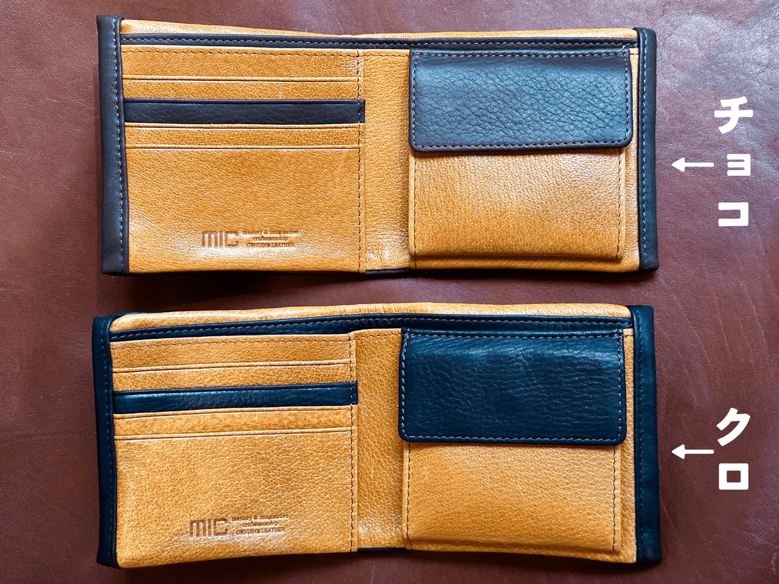 各色内側は同じ色味で、中の素材は摩擦に強い豚革です。