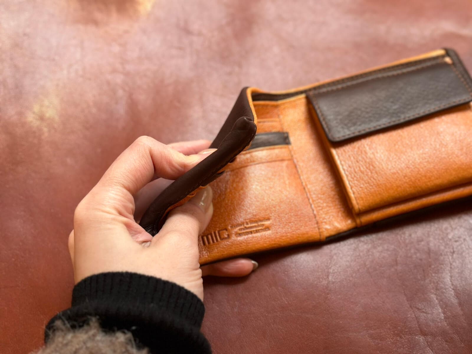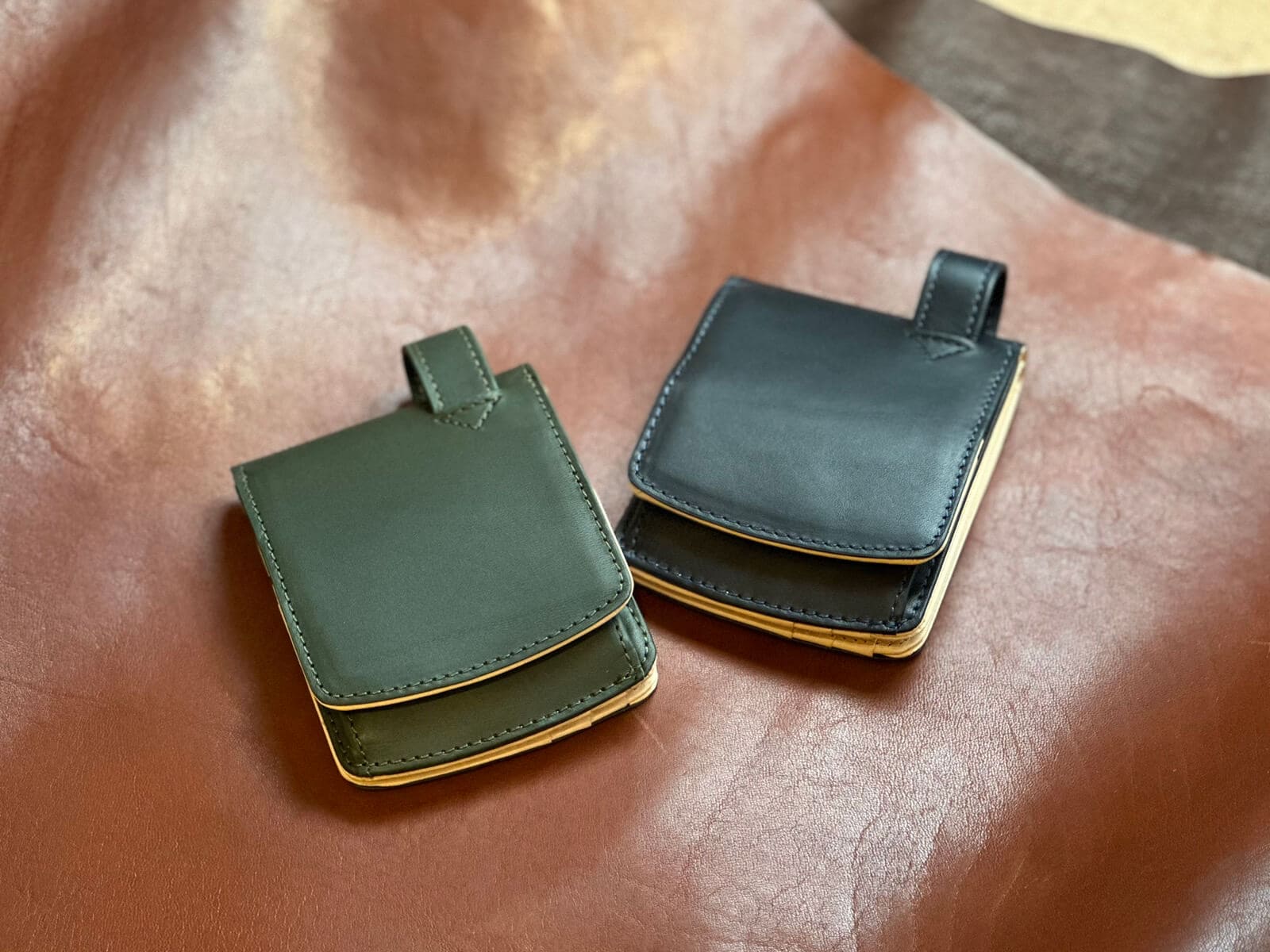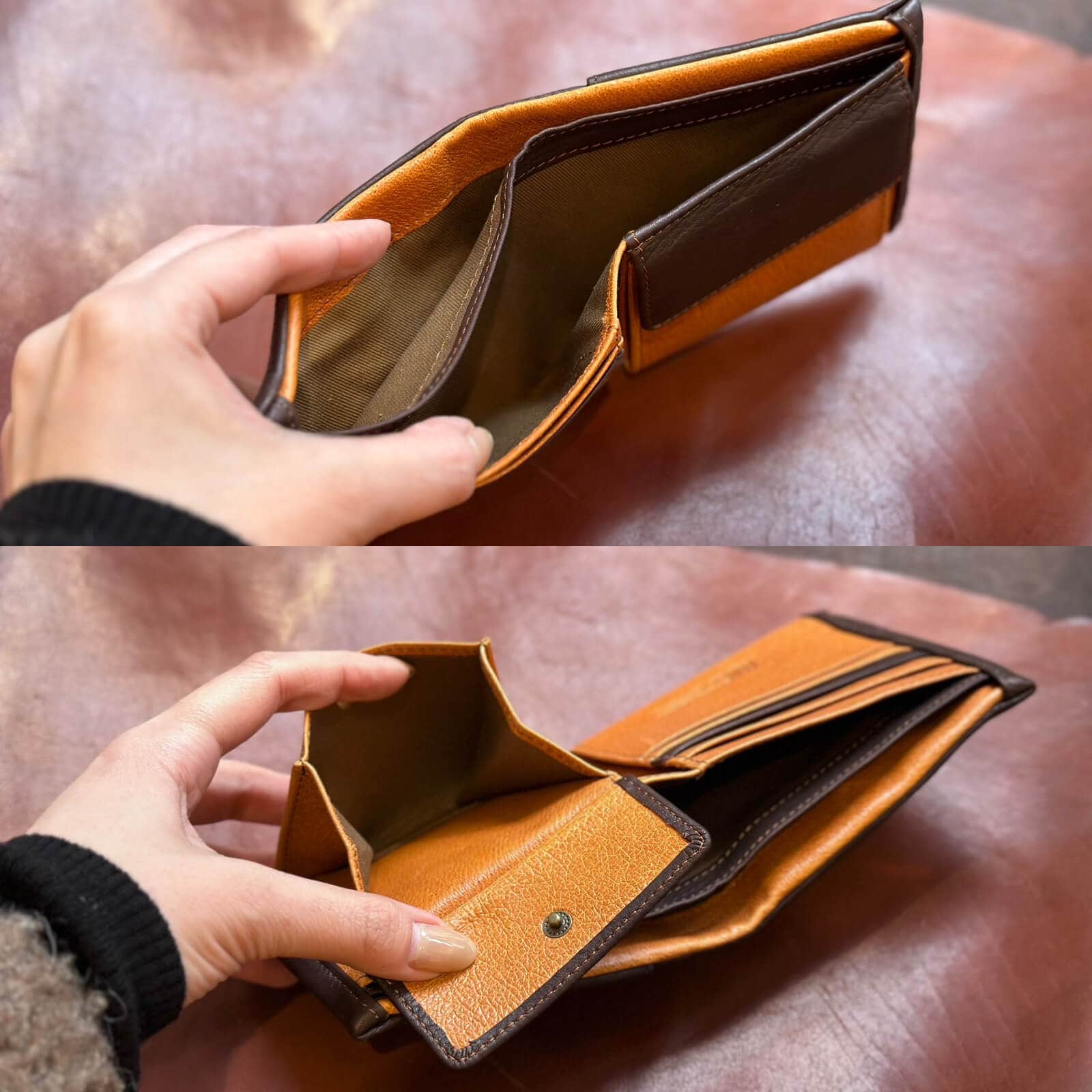 とても柔らかい子牛の革を使用した二つ折り財布です。