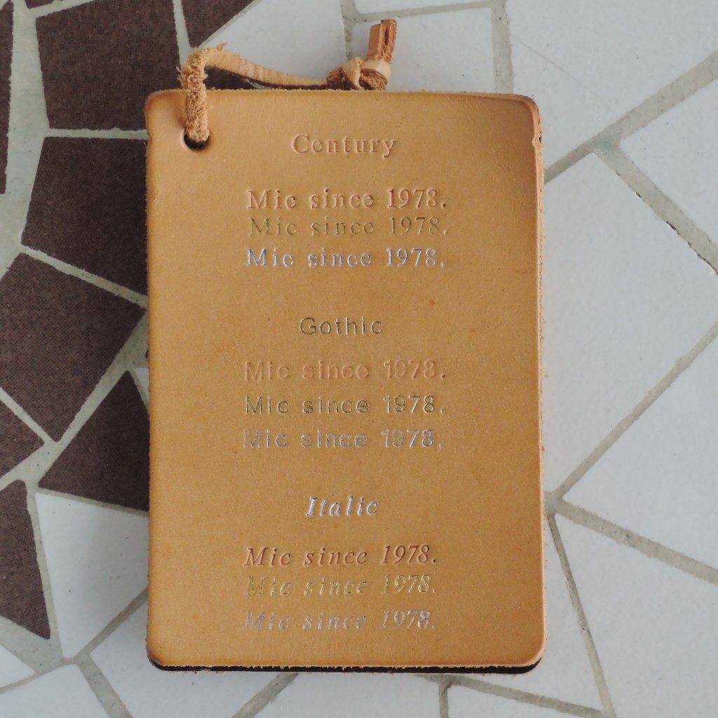 | ②名入れ刻印について ・店舗、オンラインストアどちらでも受付可能 ・税込み1,100円 ・約7~10日(混雑状況により多少前後します) ・アルファベット大文字、小文字、数字、ピリオド、スペース使用可 ・書体3種類(センチュリー、ゴシック、イタリック) ・押し方3種類(素押し、金押し、銀押し) ・熟練の職人がお入れします。対応型が豊富です。 |