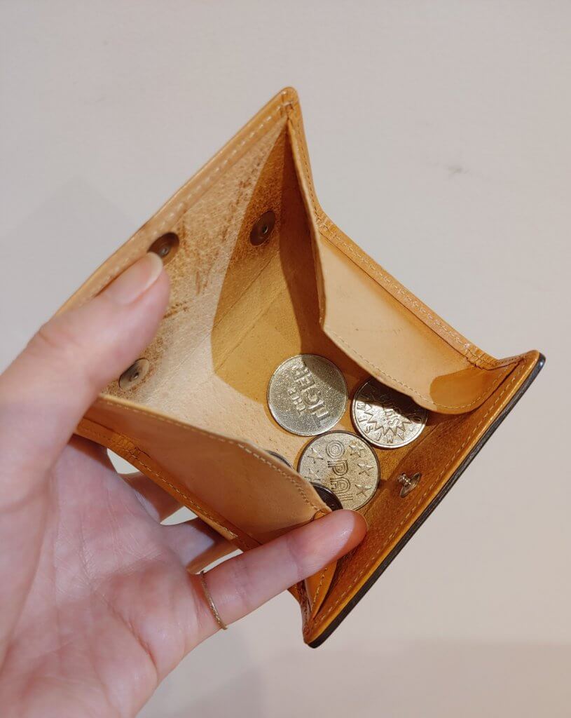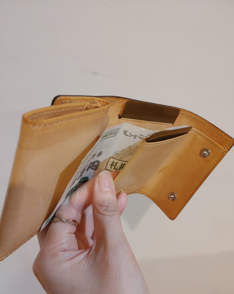 コンパクトながらコインとお札とカード2枚の収納ができます。