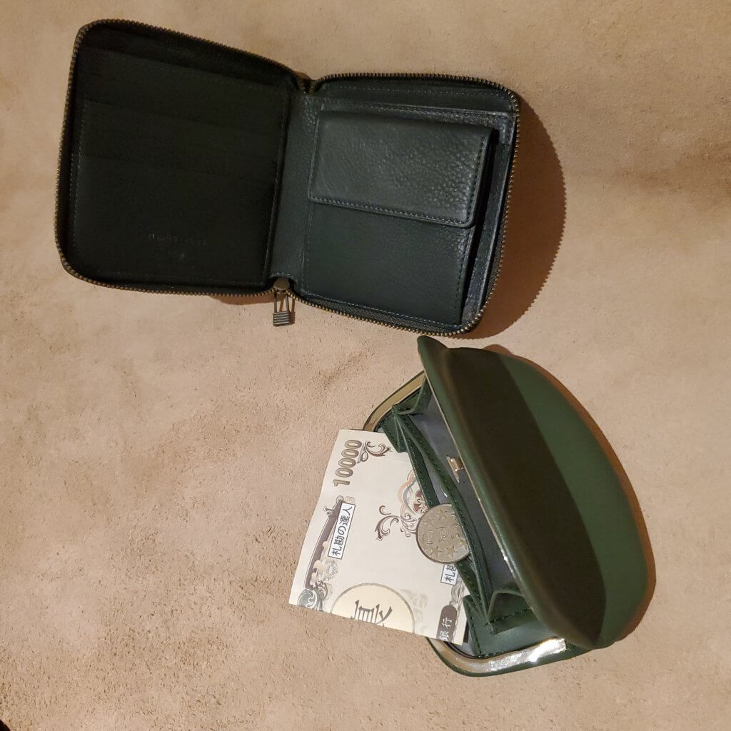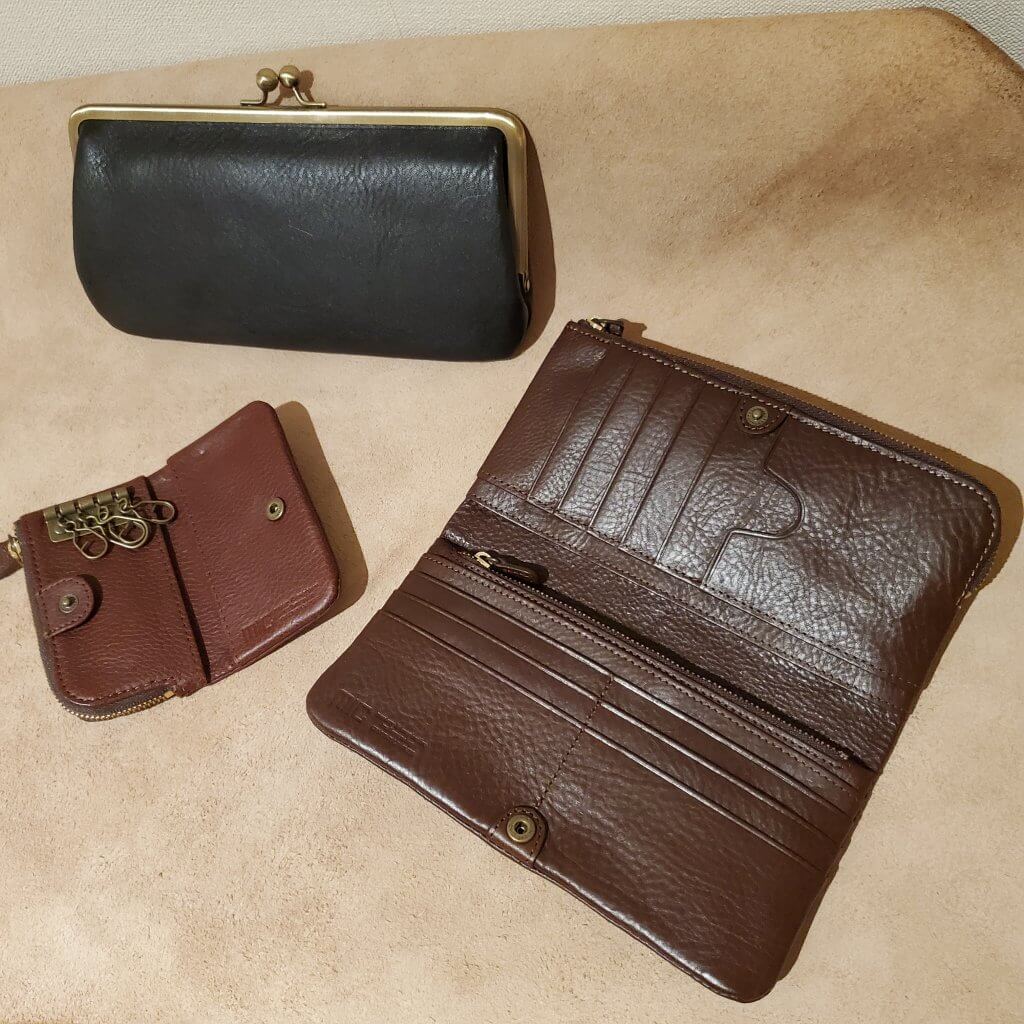 手前のお財布はMICでも珍しい押しがま口になっているお財布