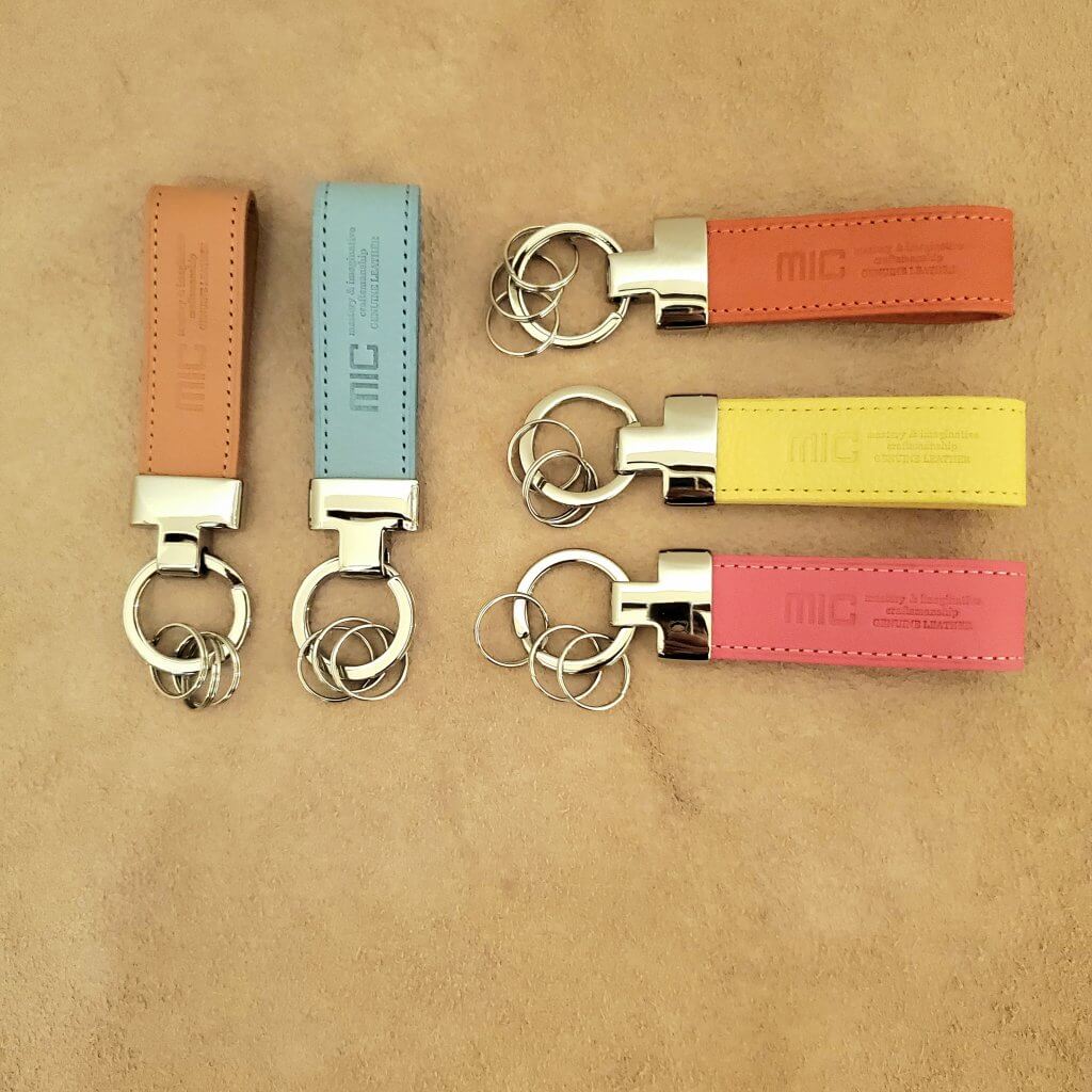 上品な柔らかいレザーを使用しているキーホルダーなのですが鮮やかな色が目を引きます!