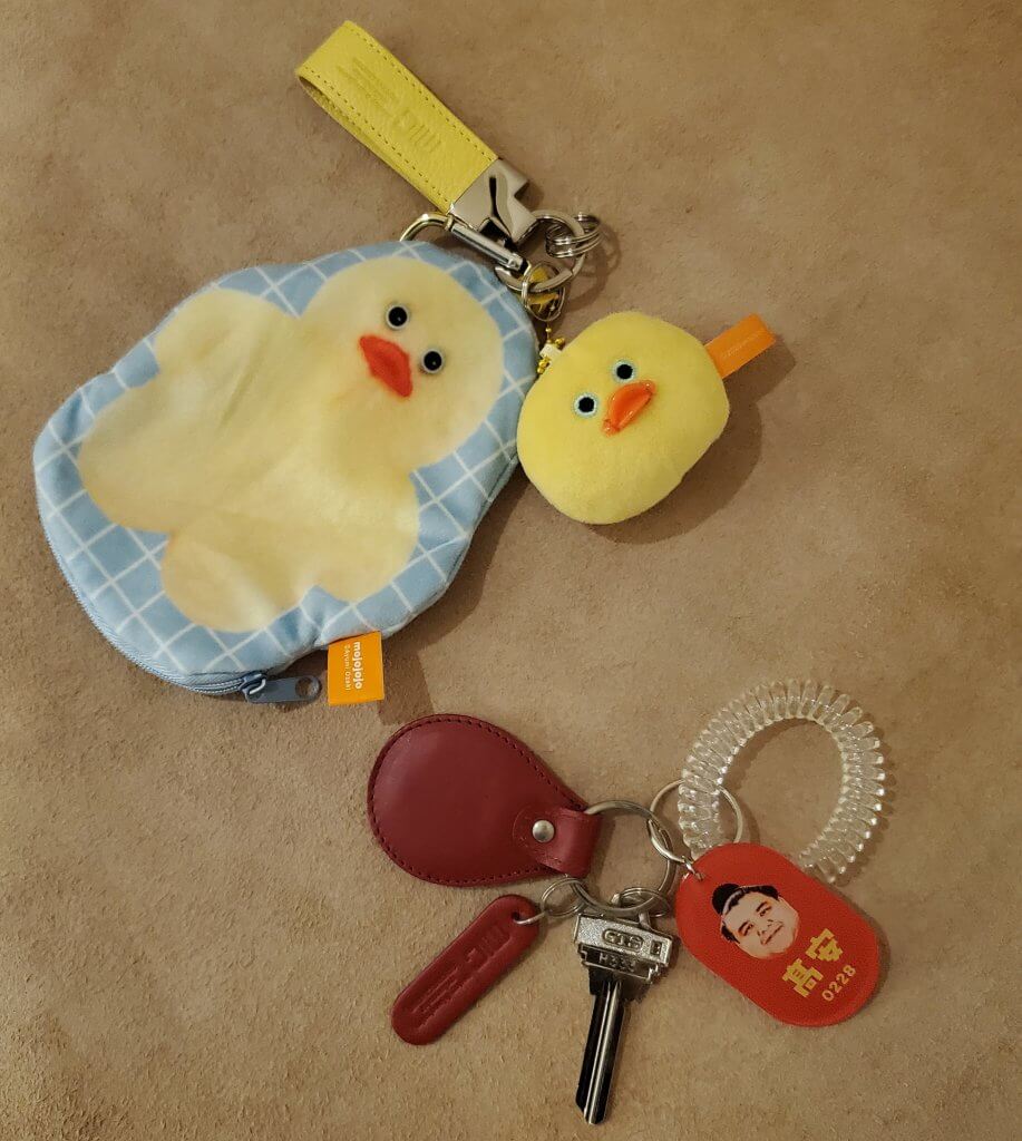 マグネットが入っているキーホルダーなので玄関の扉や冷蔵庫にピタッとくっつきます