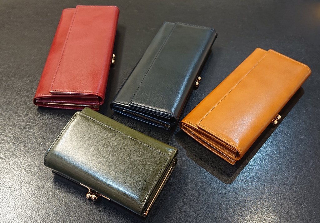 発色がよく透明感がある色合いが特徴の牛革と、金色の綺麗ながま口のコントラストが素敵なシリーズですが、長財布が特に数少なめです!