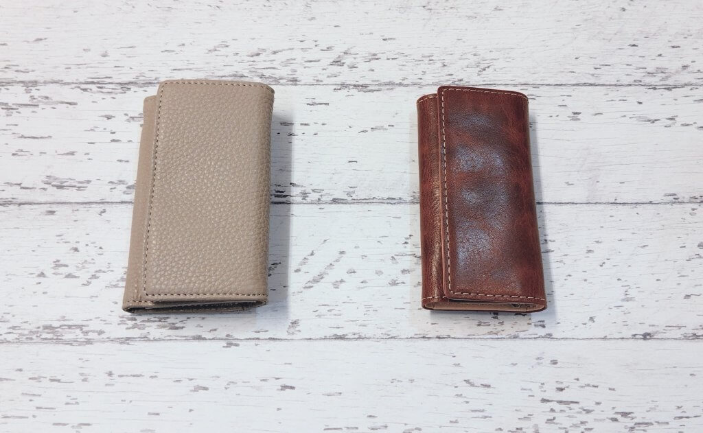 左ラフィネ、右バグッダシリーズのキーケース。(バグッダのキーケースにもカードがギリギリ入るポケット1つあります)