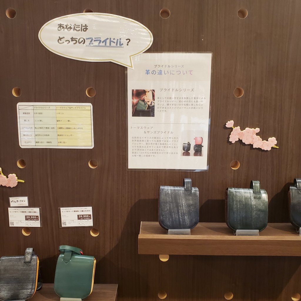 神戸三宮店ではブライドルレザーシリーズとトーマスウェア&サンズ社のブライドルと