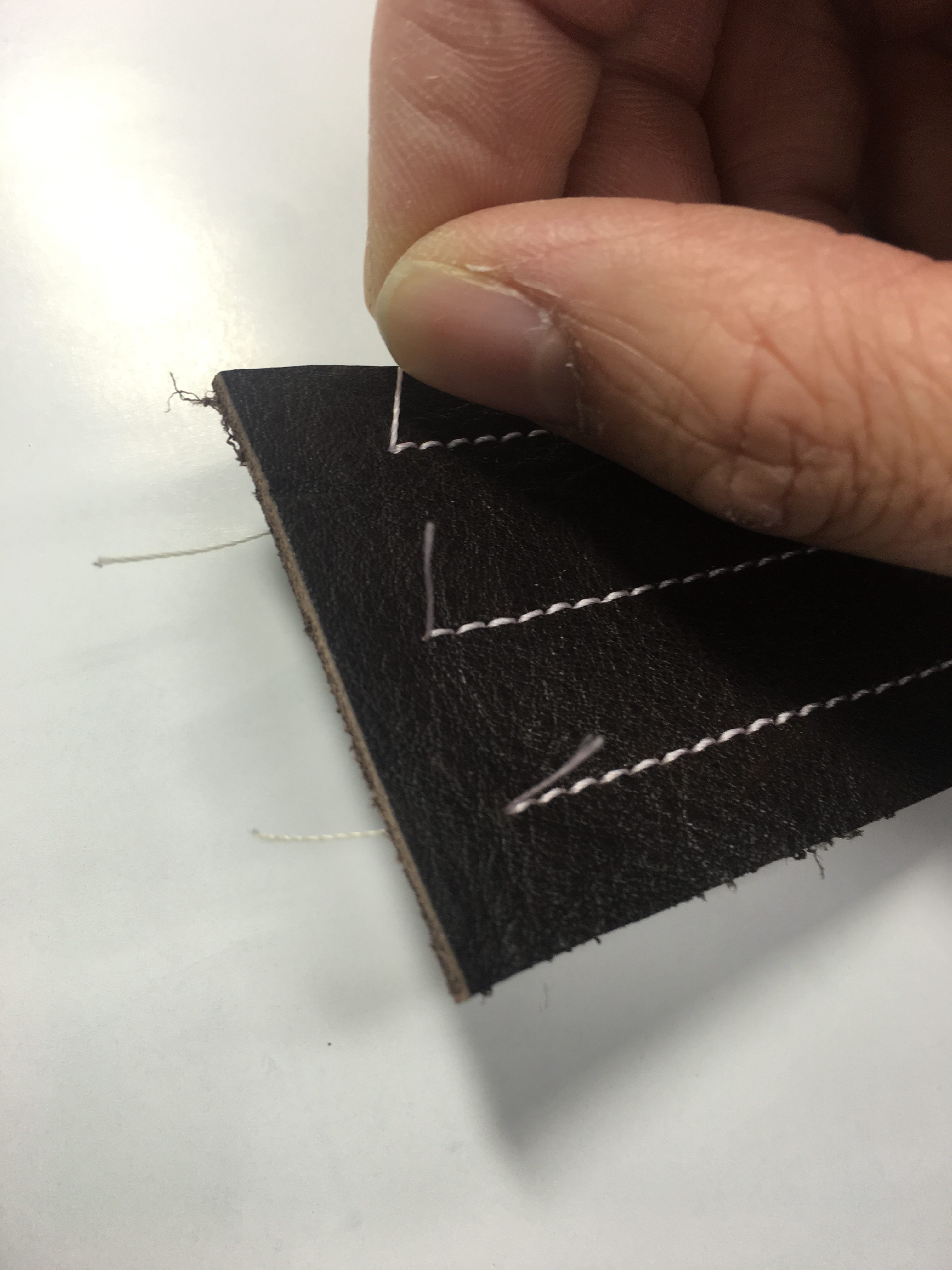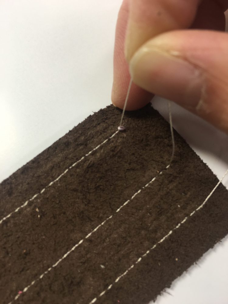ちなみに、財布を作っているときの糸止めの方法は