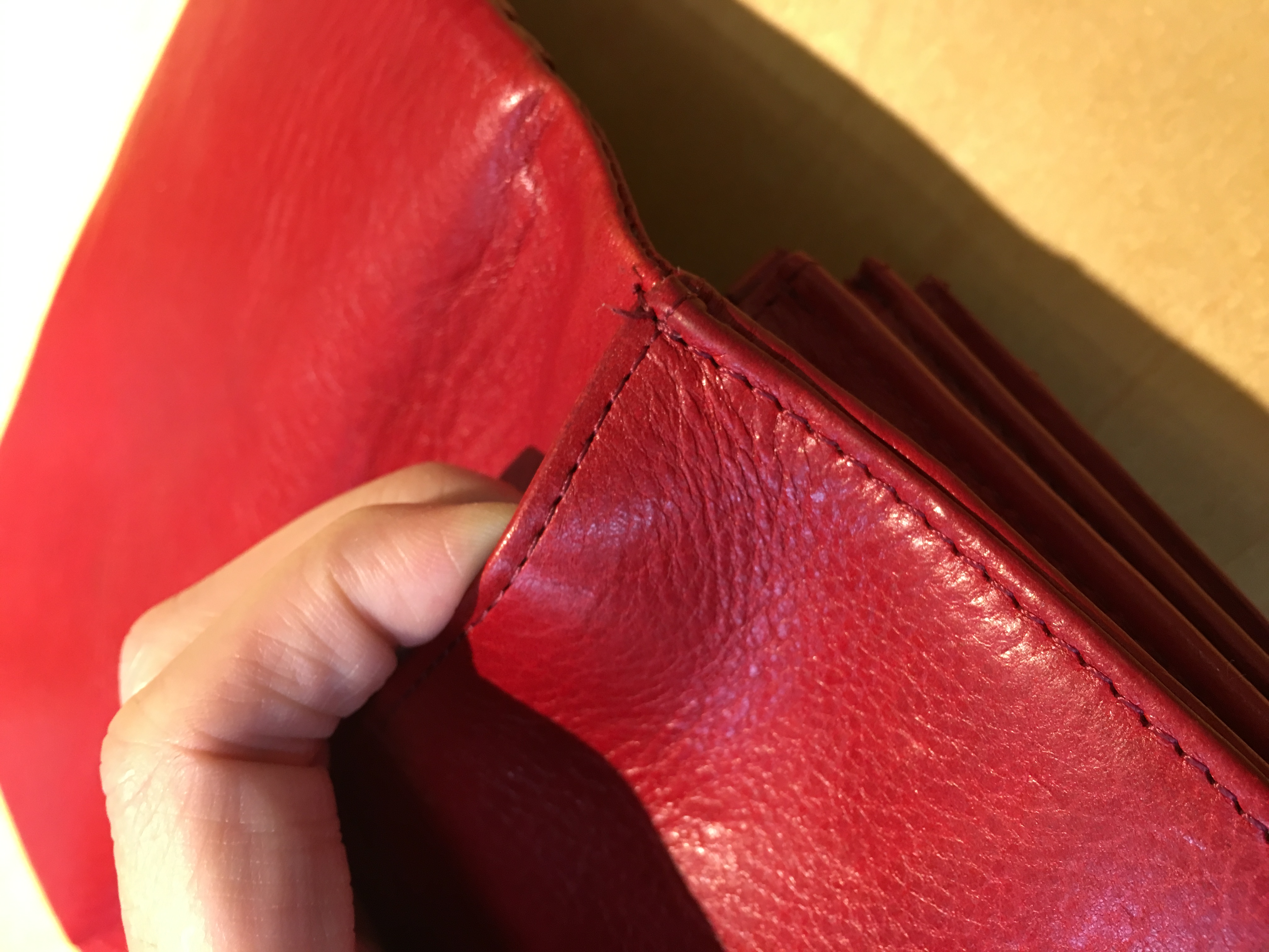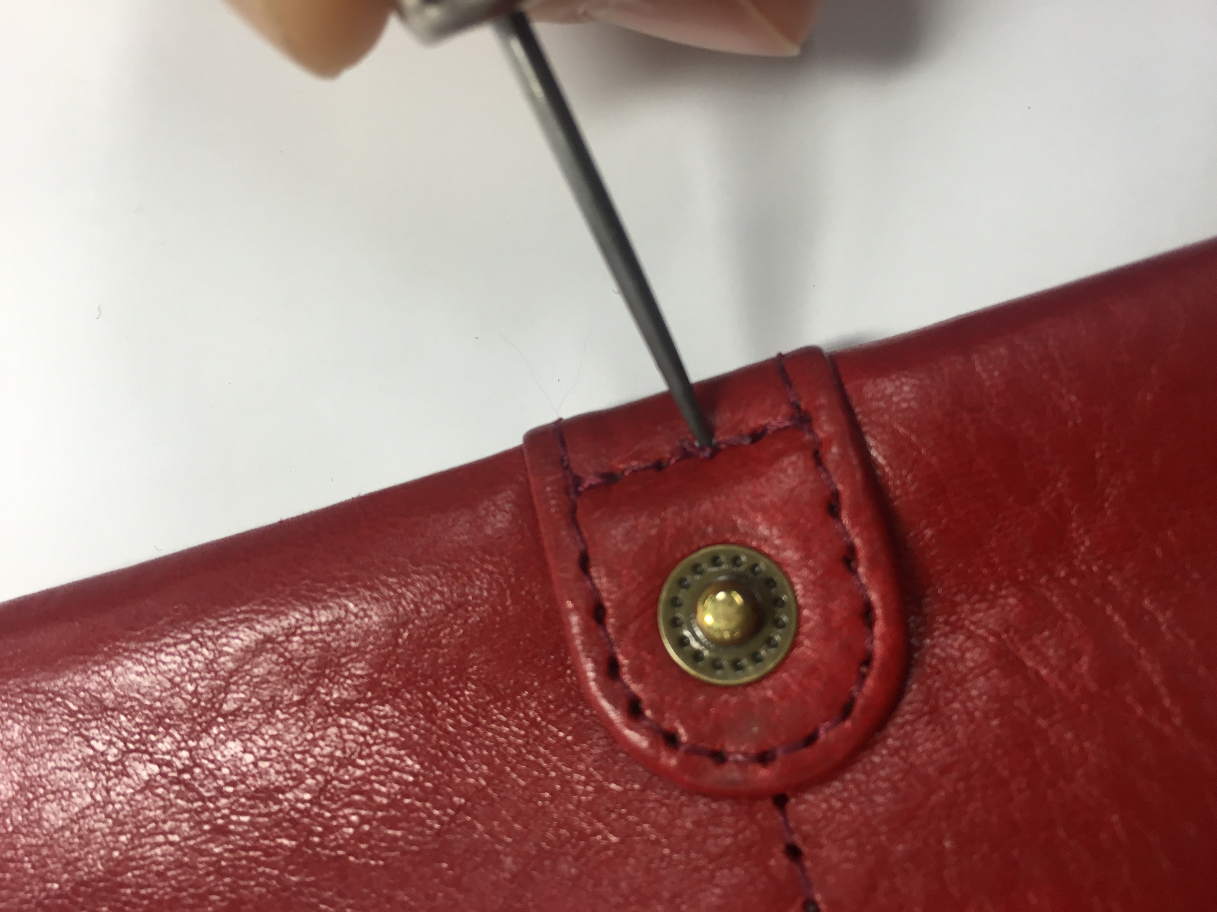 前回自分の財布をケアした時に小さいほつれがあったのでそれを直します。