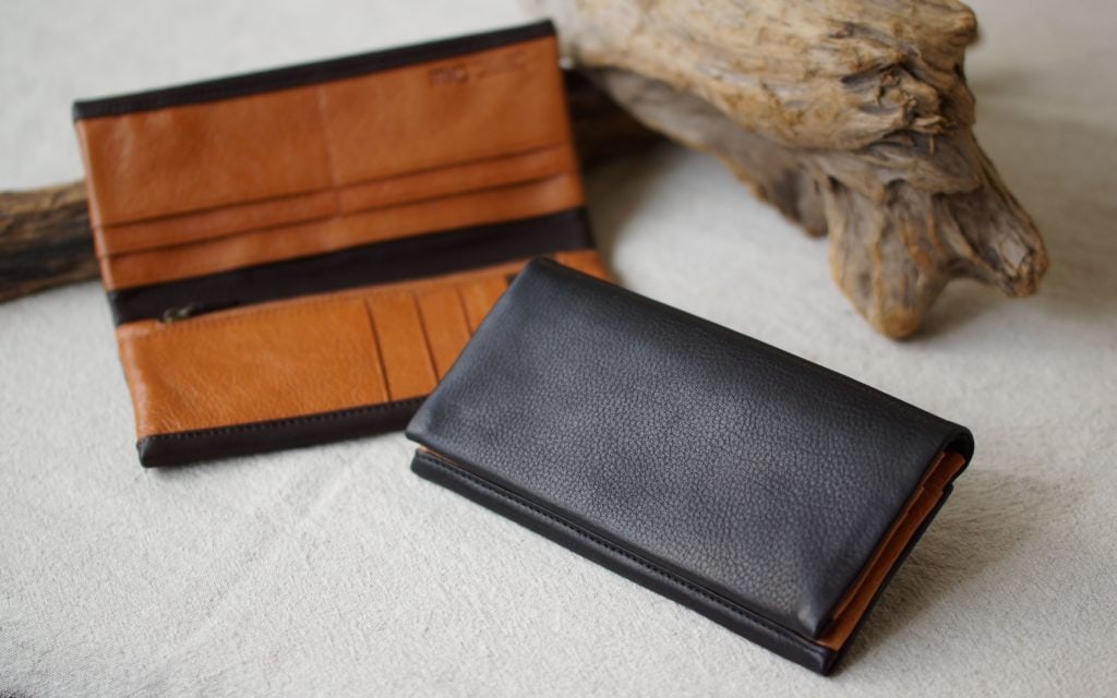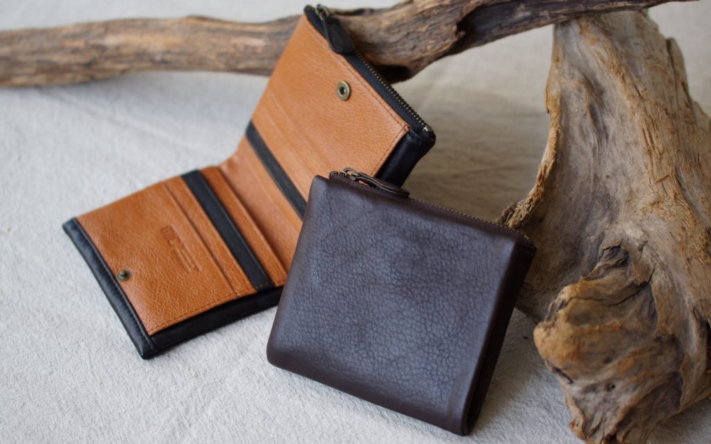 その質感を存分に楽しんでいただくため、袋縫い構造のお財布に仕立て上げました。